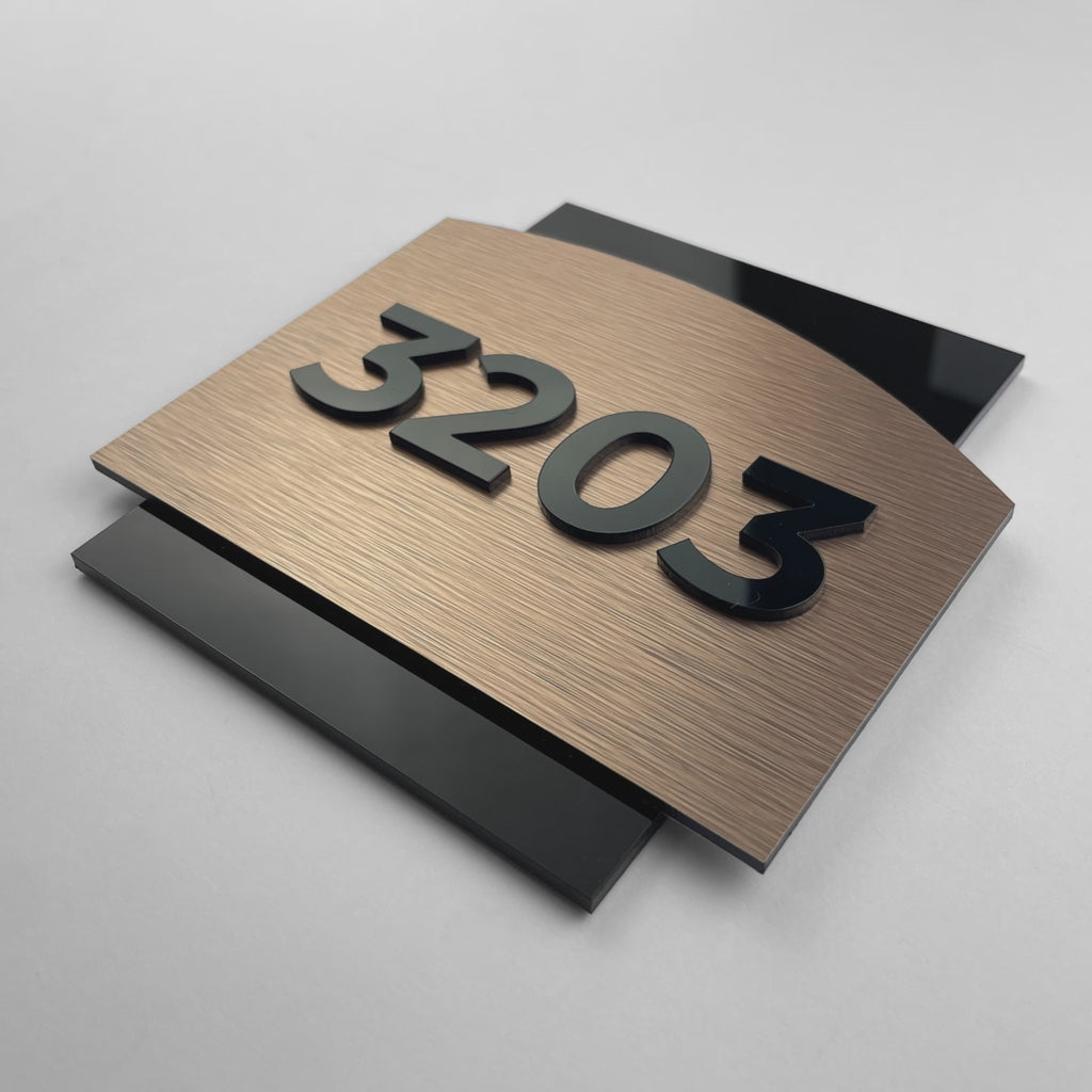 - Construction: The door plate features a sophisticated design composed of two high-quality layers. The base layer is made of a durable bronze aluminium composite, providing both strength and a sleek appearance. The top layer is crafted from elegant black acrylic glass, adding a touch of modernity and refinement.