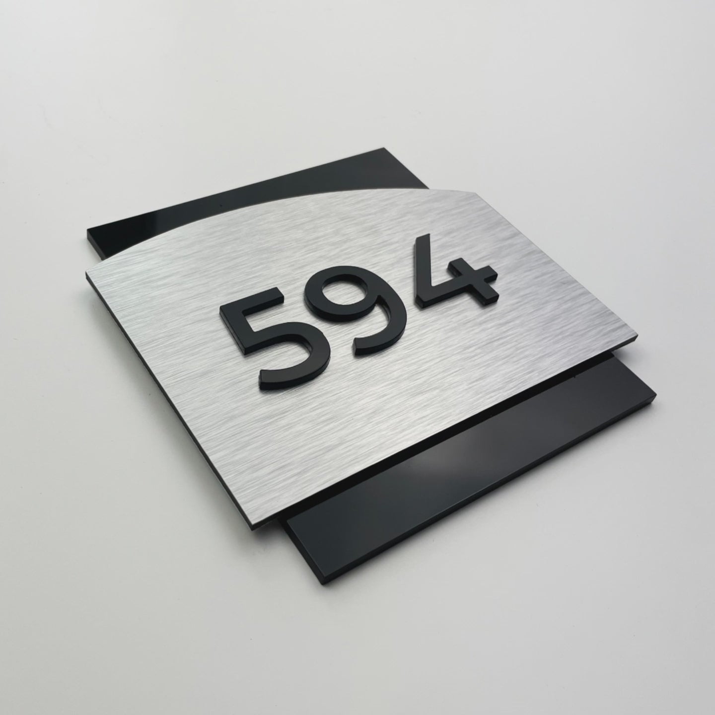 Construcción: Nuestro letrero de electricidad cuenta con un diseño premium elaborado con dos capas robustas. La capa base está hecha de aluminio plata cepillado, que ofrece durabilidad y una estética moderna. La capa superior está compuesta de vidrio acrílico negro, lo que proporciona un contraste llamativo y mejora la visibilidad.