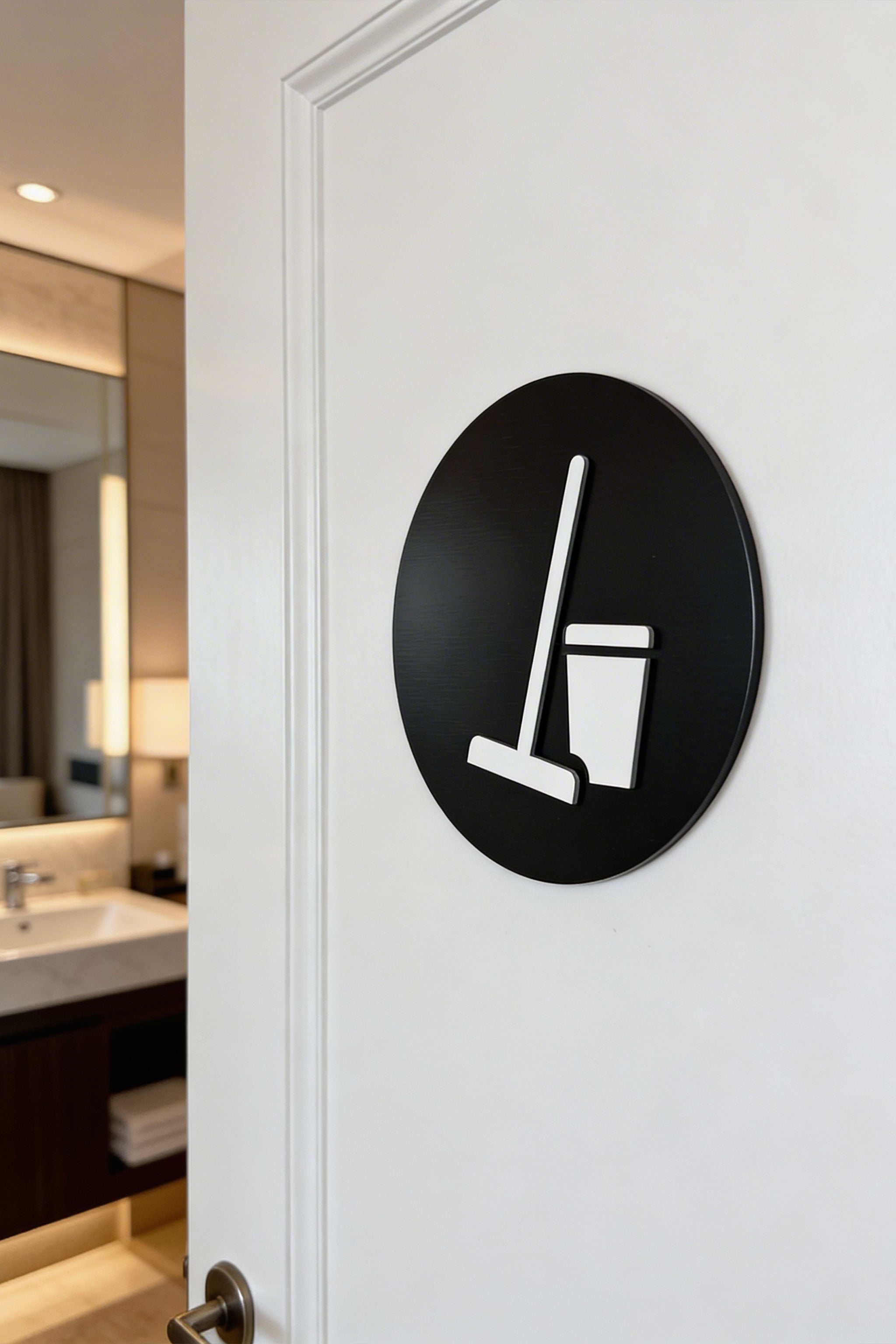 Upgrade your interior signage with a premium hotel room cleaning sign from ALUMADESIGNCO. With elegant materials, a refined 3D look, and easy adhesive installation, this utility room sign is a stylish and practical solution for modern hospitality and service interiors.