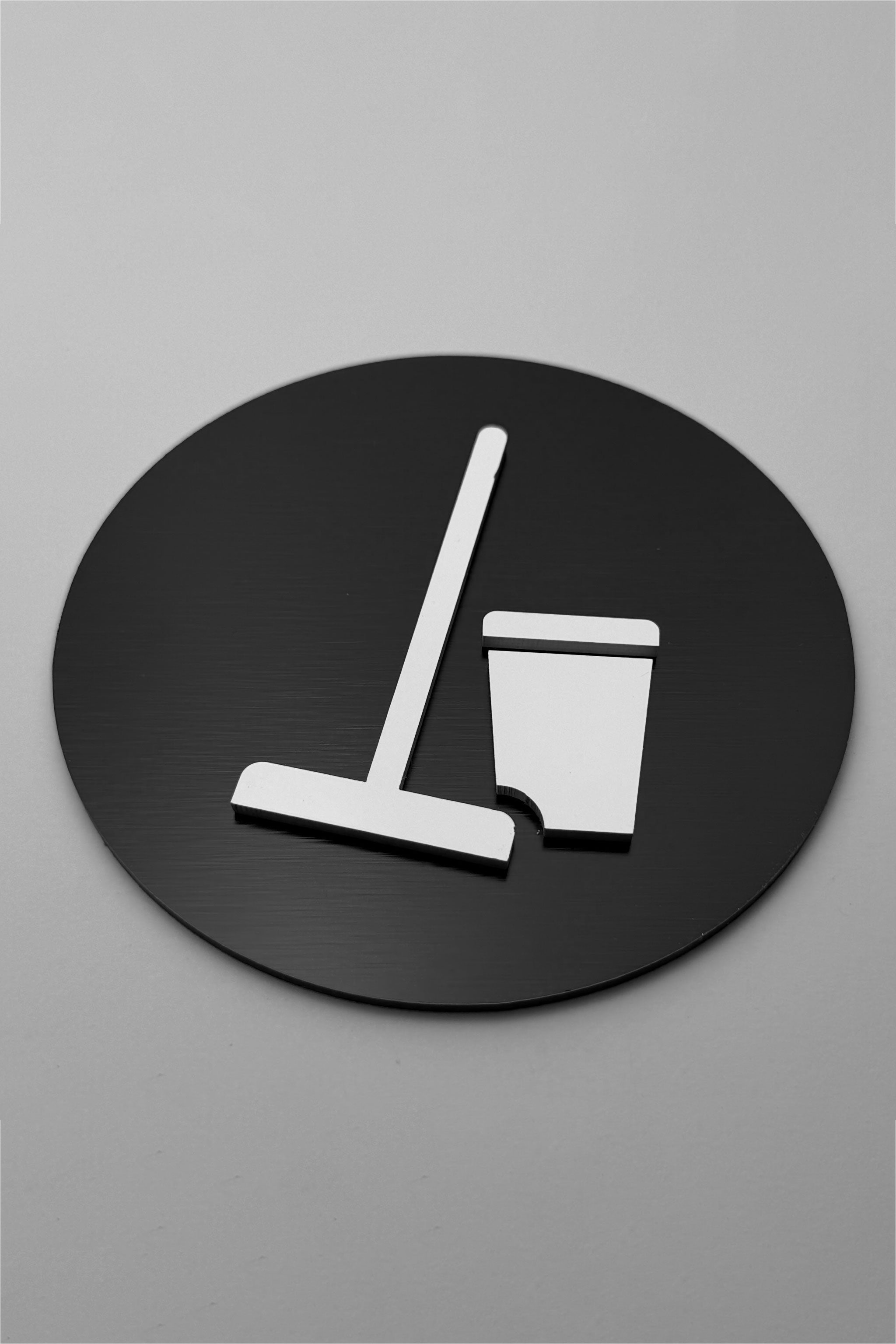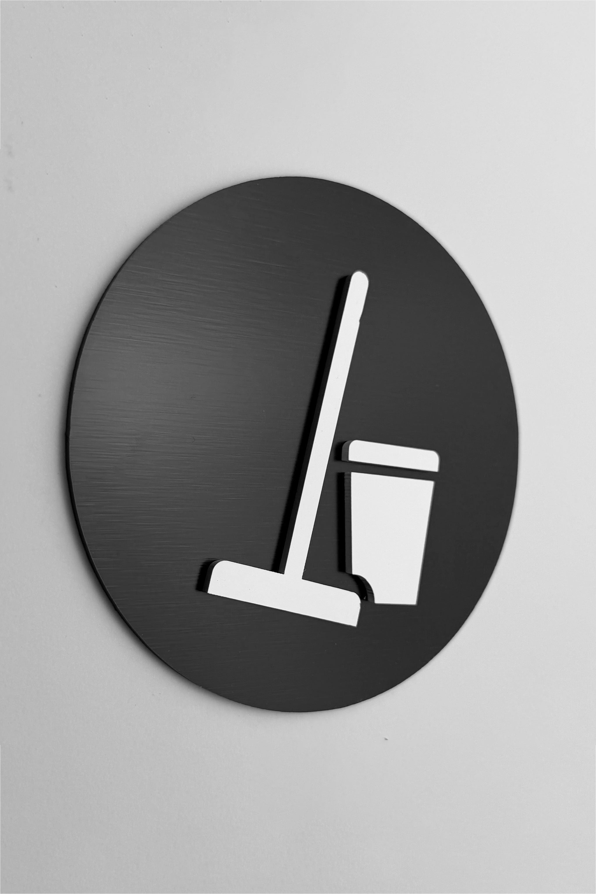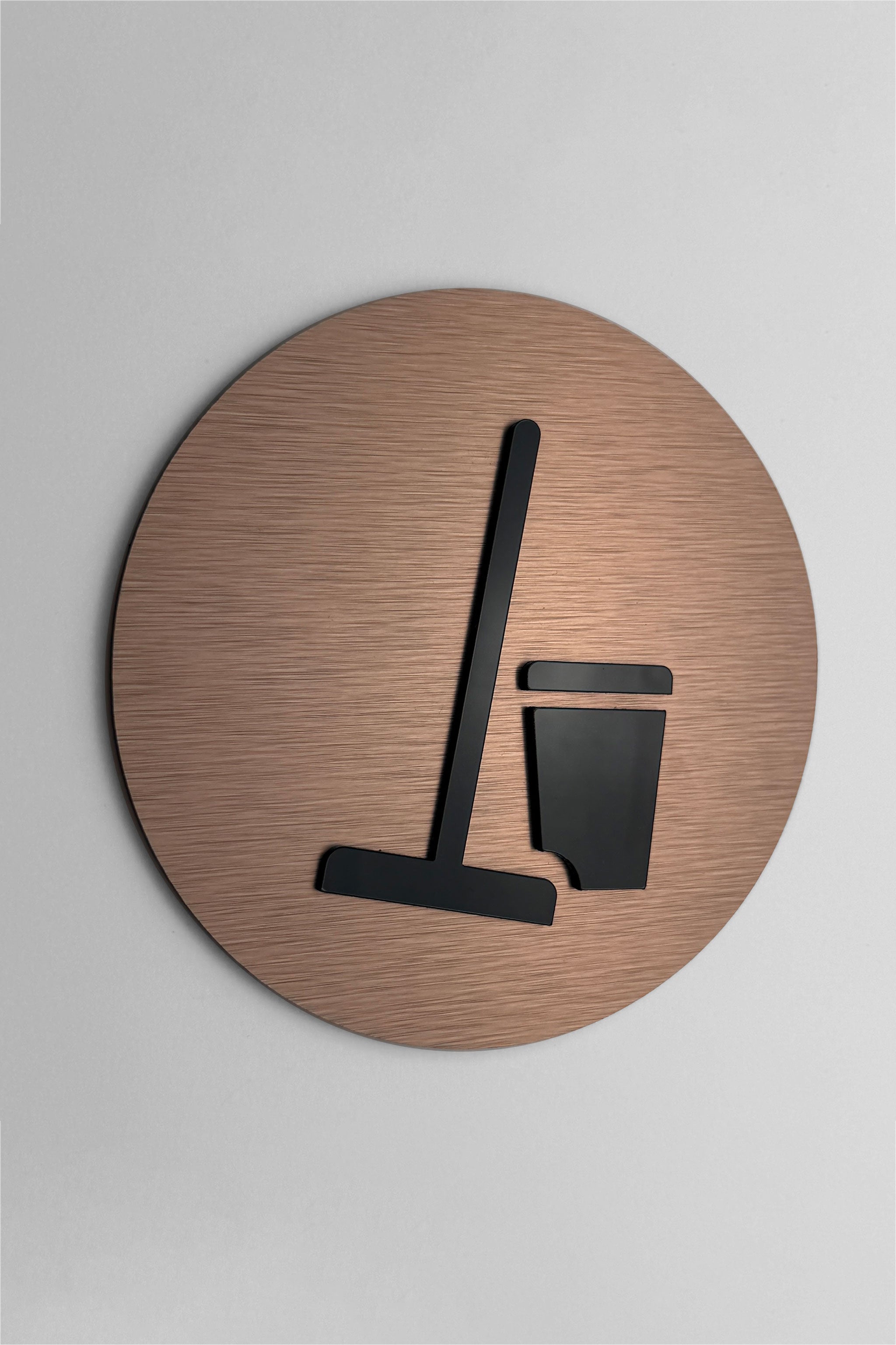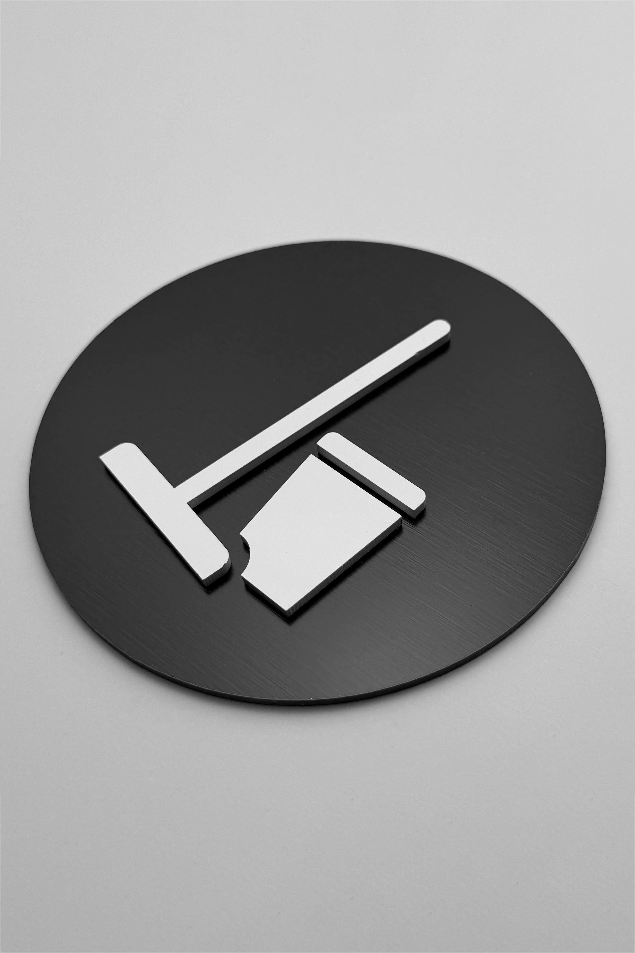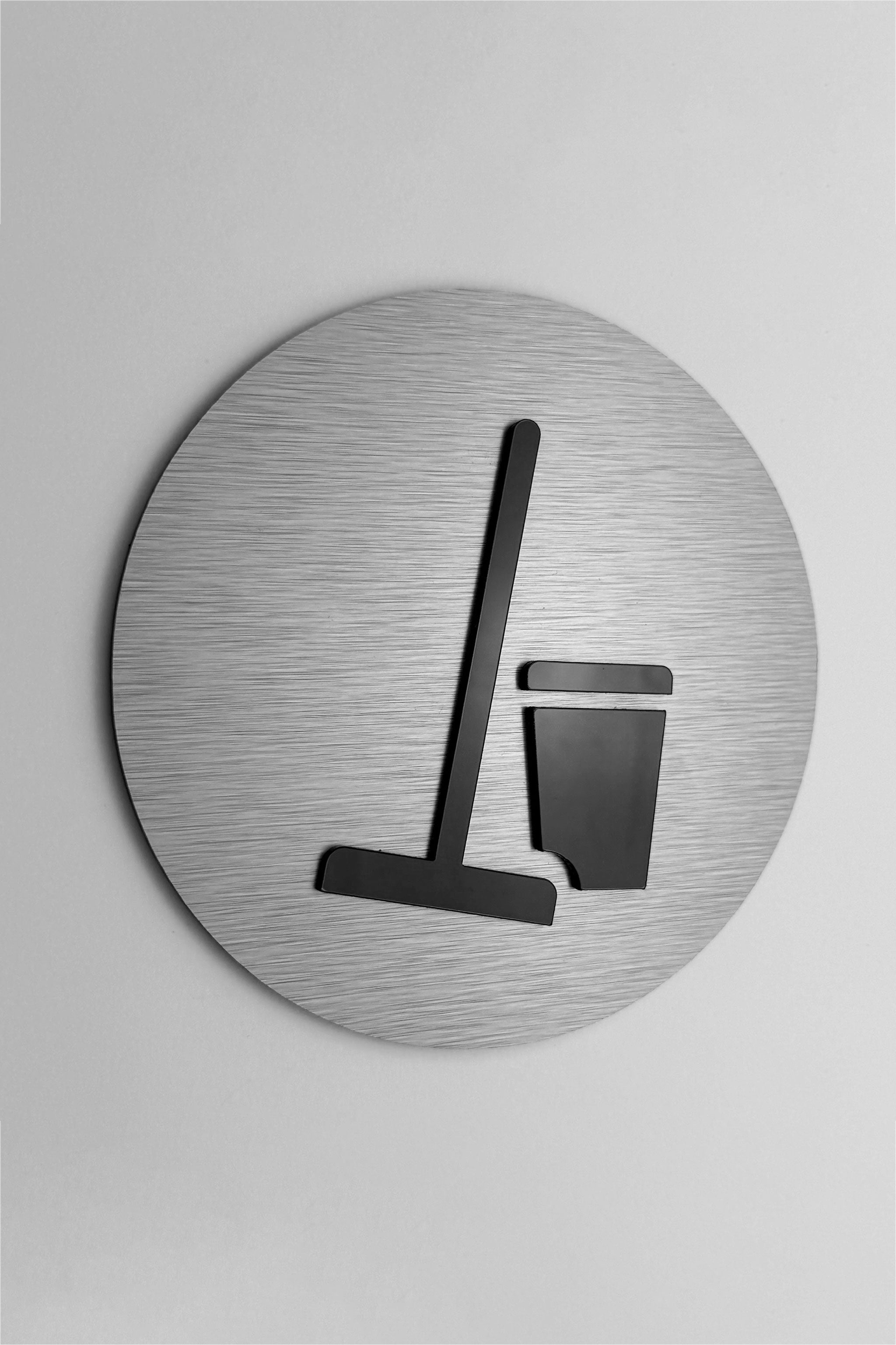 Available in three premium finish options, this modern utility room sign is crafted from a brushed silver aluminium plate with black acrylic glass symbol, a brushed bronze aluminium plate with black acrylic glass symbol, or a brushed black plate with glossy white symbol. Each version offers a professional appearance and a layered 3D effect that enhances visibility while complementing upscale interior design.